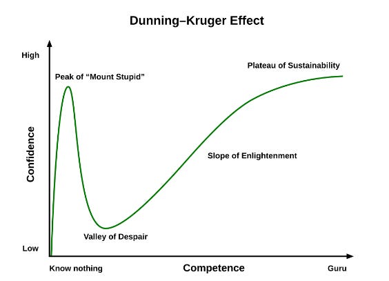 But building a demo is definitely not the same as building a business. Little did I know that this initial euphoric climb was just the ascent of Mount Stupid: