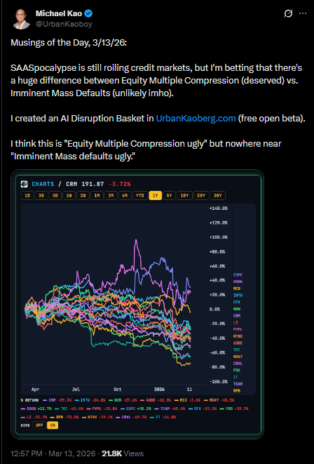It’s beyond the scope of this particular treatise, but this gets to the heart of my contrarian thesis amidst the current credit scare going on from “SaaSpocalypse” doomsayers. It’s one thing to acknowledge that existing Equity multiples for traditional SaaS might compress in the face of encroaching AI floodwaters, but it’s entirely another thing to say that these floodwaters will cause imminent mass defaults.