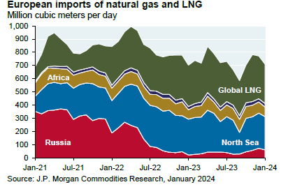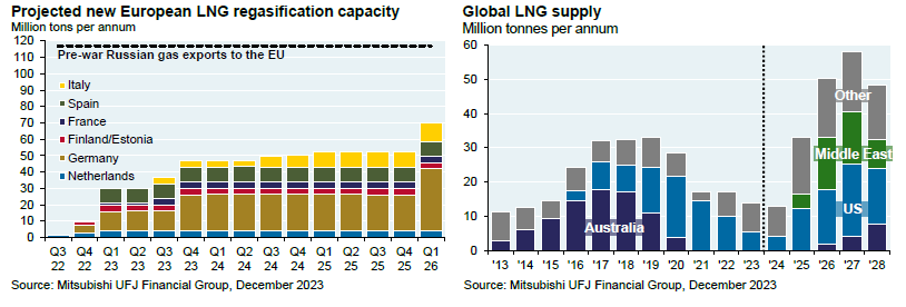 The US became the largest LNG exporter in 2023, as LNG replaced Russian pipeline Natural Gas since the Russian invasion of Ukraine. This trend is likely to continue even if peace breaks out between Russia and Ukraine, because the Europeans appear to have “found religion” in taking responsibility for not just their own Defense but also their Energy Security.