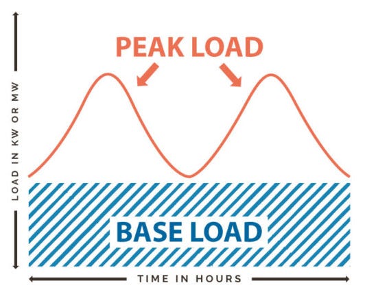 Intermittent Energy Sources create oscillations in Peak Loads which require Peaker Power Plants to fill in gaps created by these intermittent and often unpredictable Peak Loads; therefore, Intermittent Energy Sources can never serve as Reliable Base Load.