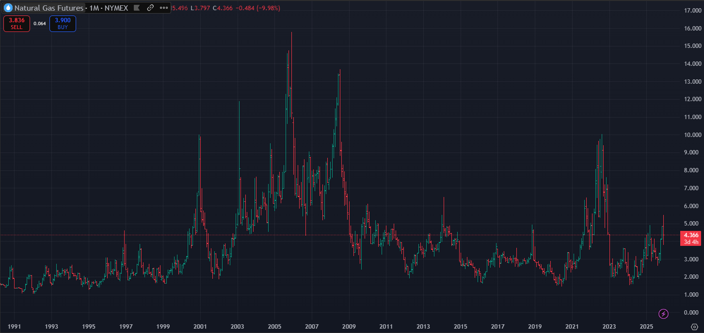 As a result of its provincial nature, Natural Gas prices tended to be characterized by extreme volatility driven by local weather events (which can drive extreme inelasticities from both a Supply and Demand perspective) and less by Macro conditions.
