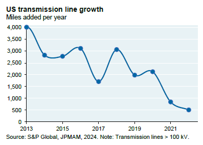 JPM: “While projects less than 150 miles have been completed in 5-10 years, projects more than 400 miles (e.g., from Wichita to St Louis) can require 15-20 years to complete.”