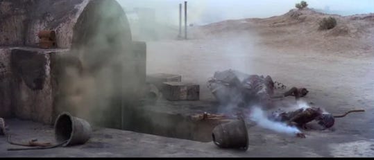 Hidden beyond a sand dune in the middle of nowhere is the set of Mos Espa, from Star Wars: Episode I — The Phantom Menace: