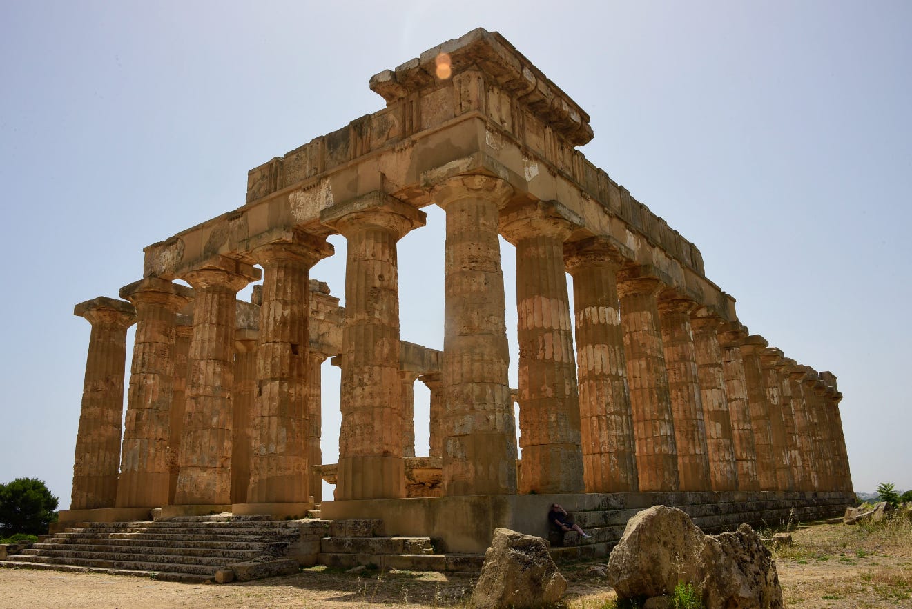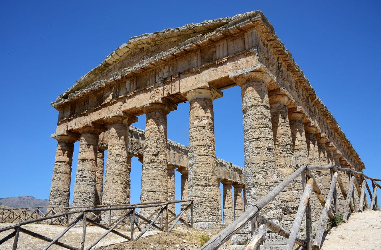 Segesta was a city of the Elymians, one of the three indigenous peoples of Sicily (along with the Sicani and Sicels), but heavily Hellenized in architecture and culture. The famous Doric Temple of Segesta was built before 430 BC — now we’re talking!