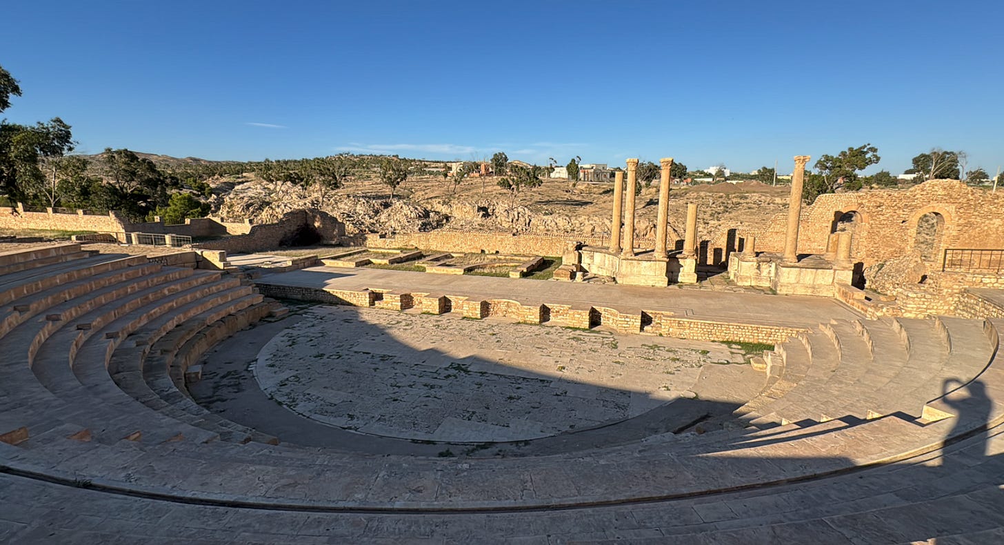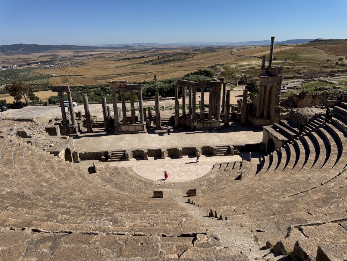 Dougga Theater is one of the best preserved Roman Theaters I have seen and is used to this day. In fact, my good musician friend who lives in Tunis performed there this July!