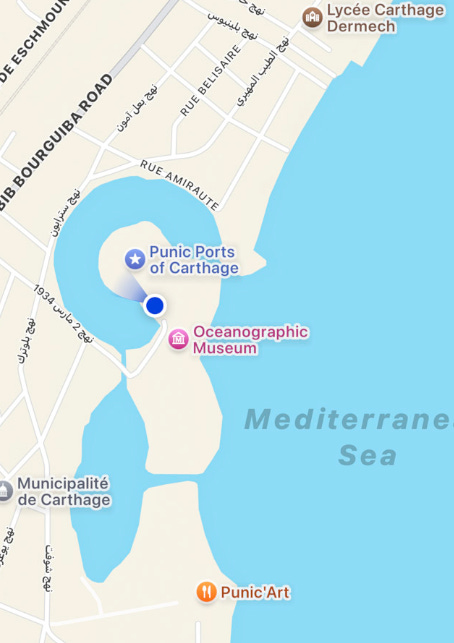 Today, the remains of the original Punic city can still be seen amidst the ruins of the later Roman Carthage, as denoted by the arrow above and depicted below: