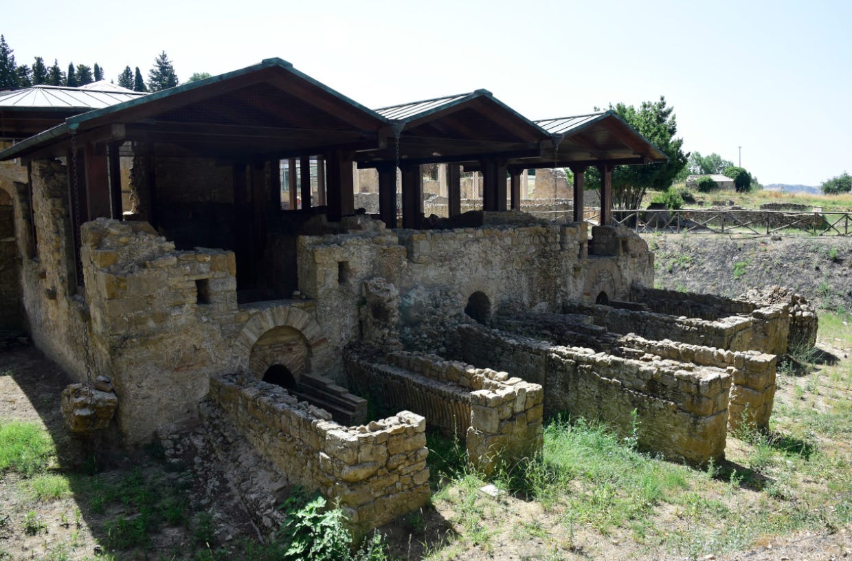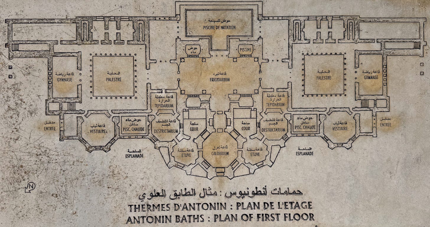 Under the reign of Antoninus Pius, the Antonine Baths were built between 145-165 AD and were the third largest Roman bath complex in the Empire after Rome and Alexandria: