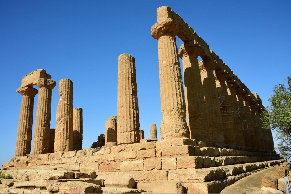 This is the titanic Doric Temple of Juno, built in the 5th century BC, razed by Carthage in 406 BC. Note the size of the tourists for a sense of scale: