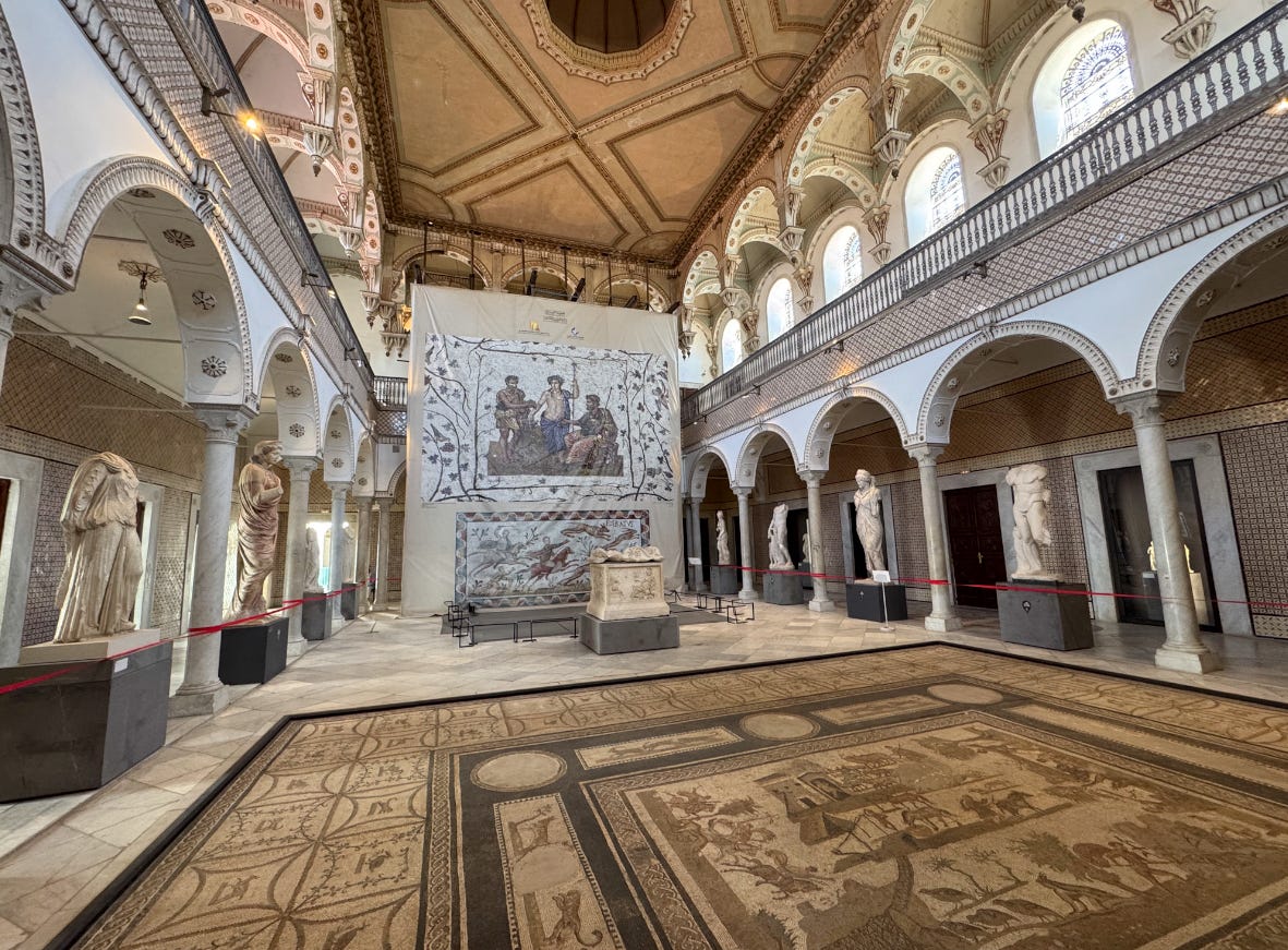 The Bardo Museum in Tunis holds one of the largest collections of Roman mosaics in the world, from many of the sites we are seeing: Dougga, Thuburbo Majus, El Jem, Sbeitla, Gigthis, Carthage.