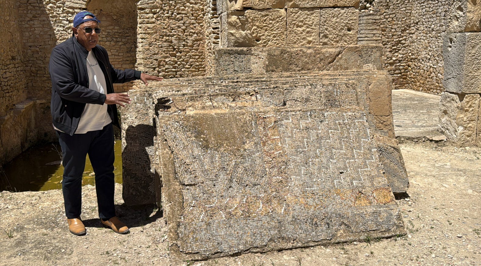 Our guide and art historian Ahmed explains how in situ mosaics are removed to be preserved in museums: