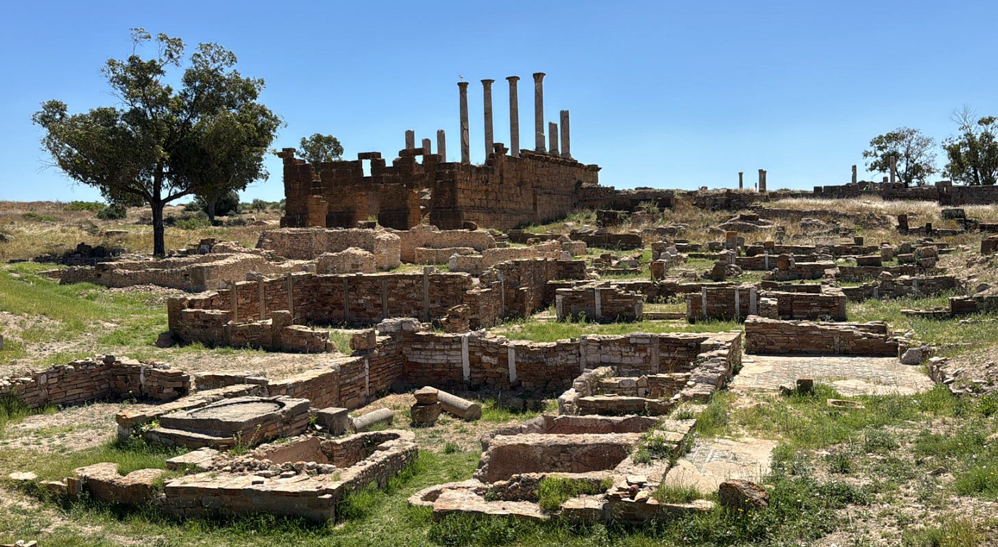To the west of Tunisia is Algeria, which was known in Roman times as Numidia, which features extensive Roman ruins that I want to visit someday. To the east of Tunisia is Libya, and one of its best preserved Roman cities, Leptis Magna, is on my to-do list one day.