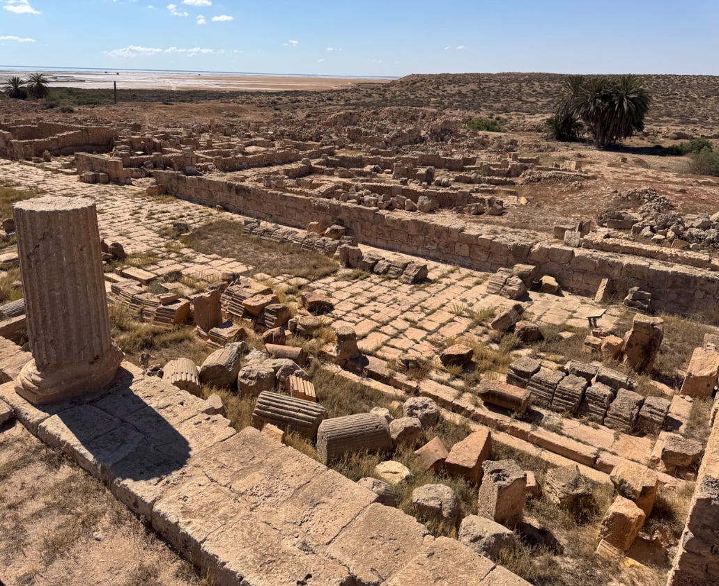 Gigthis was an ancient town in what is now southern coastal Tunisia, first Phoenician/Punic, then Roman. The site includes a Forum and Capitolium like many of the sites we’ve visited. It’s remote and even less‑visited than many of the other places we’ve been.