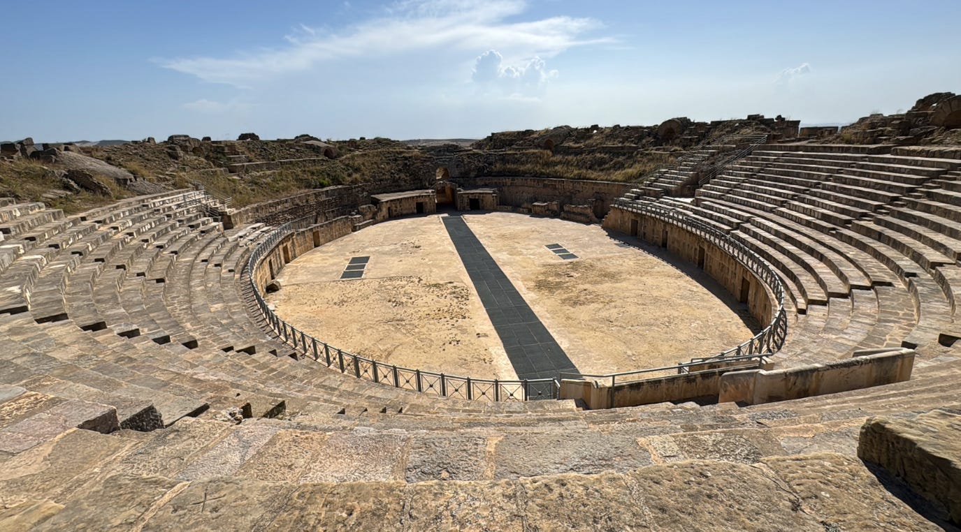 The site offers a blend: fortress remains from Numidian times, Roman Theater, Roman Baths, and a settlement that shows Rome’s shift from coastal domination to inland control. The location shows the frontier of Roman Africa in action — control of trade, roads, and local elites.