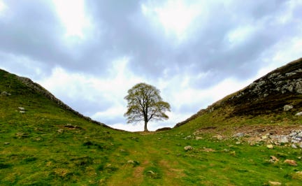 Sadly, two men chopped this iconic tree down in September, 2023 in a senseless act of vandalism and were jailed for it. English Heritage has since planted saplings at the Sycamore Stump, and hopefully the Sycamore Gap will regain its iconic tree in a couple hundred years!