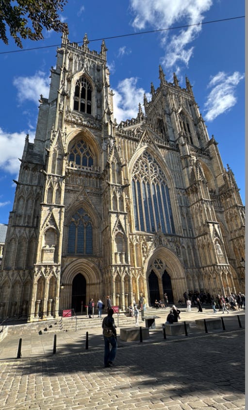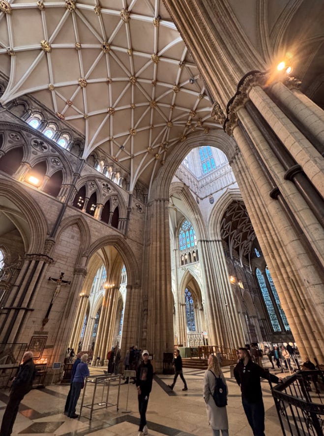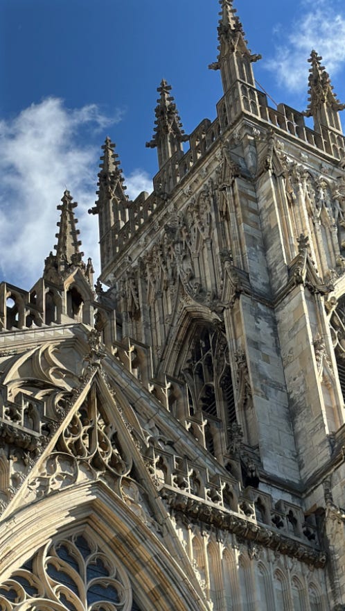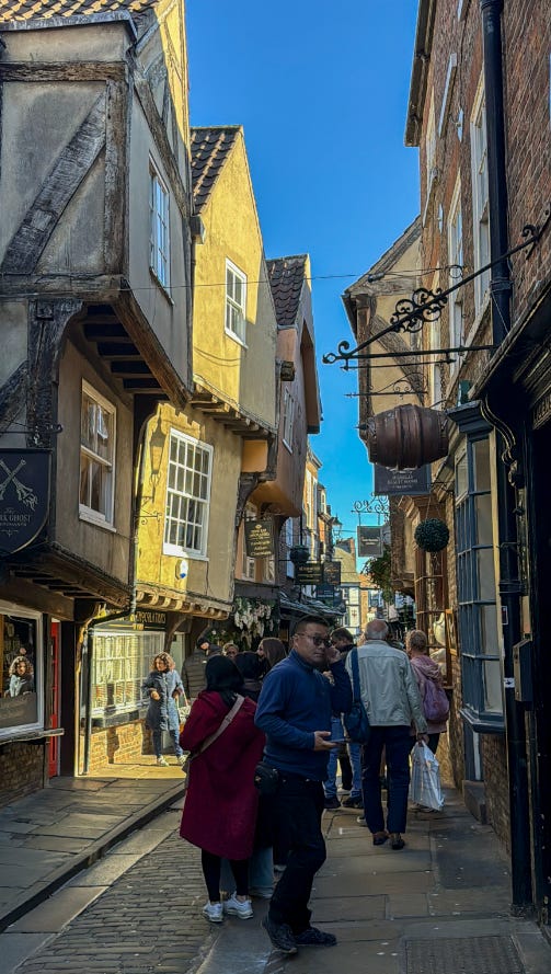 Nearby is The Shambles, one of the best-preserved medieval streets in England, which sits atop the Roman street grid, showing how the Anglo-Saxons and later the Normans inherited and reused the bones of Rome. The Shambles is often cited as an inspiration for Diagon Alley in Harry Potter because of its narrow, winding layout and dramatically overhanging timber buildings.