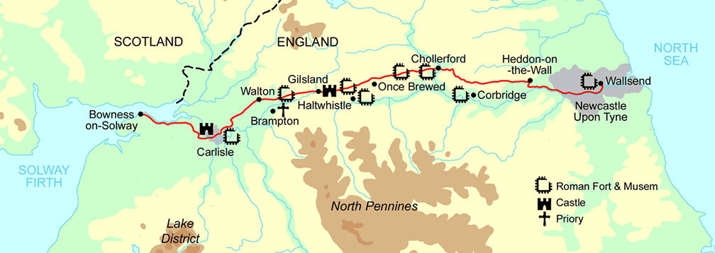 Rather than starting from scratch, Roman engineers absorbed the Stanegate system into the new frontier, reusing its forts, supply routes, and logistical infrastructure. The Wall ran 73 miles (80 Roman miles) across northern England from Bowness-on-Solway in Cumbria to Wallsend in Northumberland at the mouth of the Tyne River.