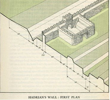 In addition to the 16 Wall Forts, every Roman mile there was a fortified Milecastle, which was like a mini-Fort. Between each Milecastle were two Turrets at one-third mile intervals.
