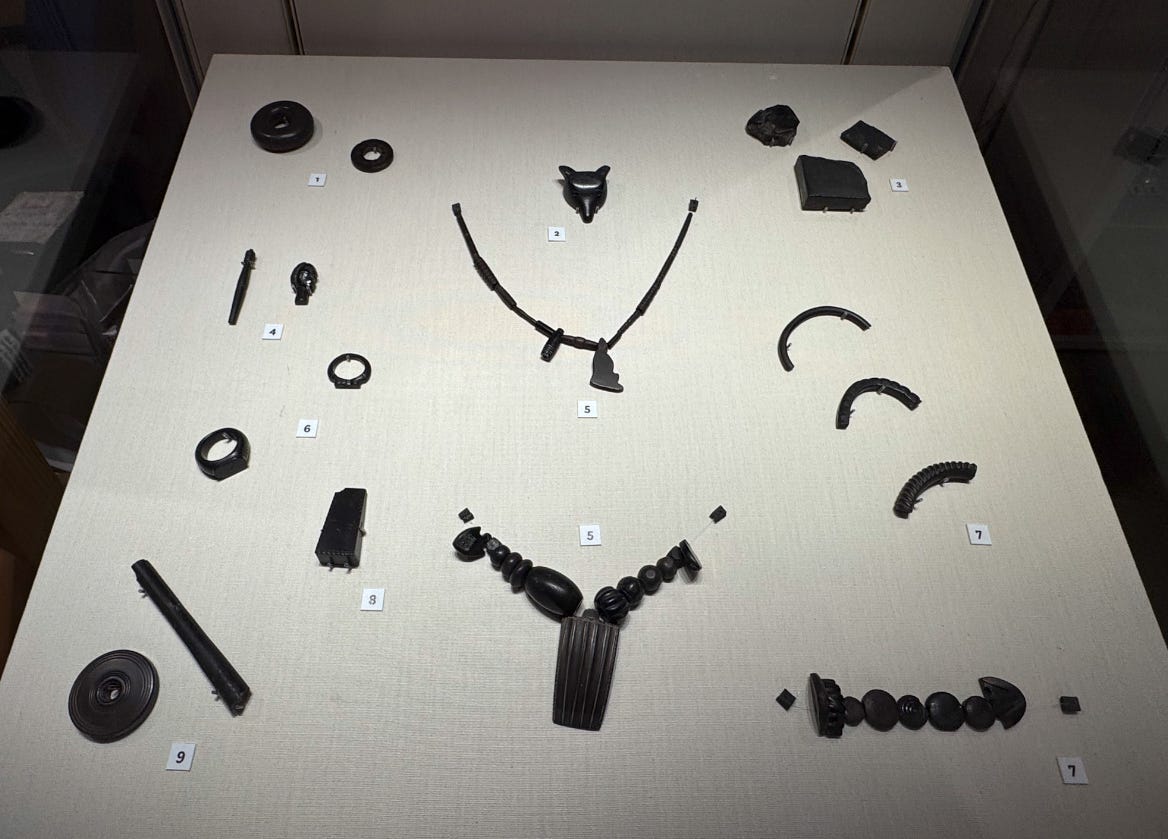 Here is a collection of jet jewelry recovered at the site. Jet jewelry was popular with Roman women in the early 4th century: