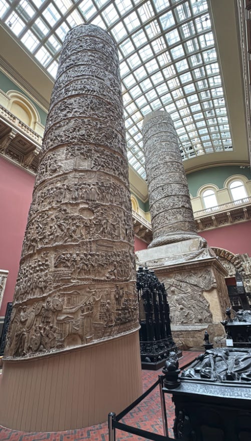 Here are two replica sections of the aforementioned Column of Trajan from Rome, which celebrates Trajan’s conquest of Dacia: